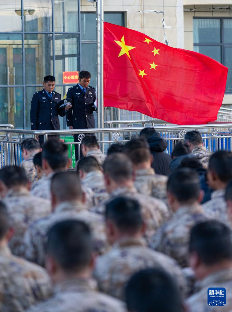 1月13日上午9時30分,西藏定日6.8級地震遇難同胞悼念儀式在受災(zāi)最嚴(yán)重的長所鄉(xiāng)舉行。參與救援的解放軍和武警官兵、消防救援人員、公安民警、醫(yī)護(hù)人員、青年志愿者及有關(guān)企業(yè)員工、干部職工、震區(qū)群眾代表數(shù)百人,脫帽肅立,向遇難同胞默哀3分鐘。新華社記者 丁增尼達(dá) 攝