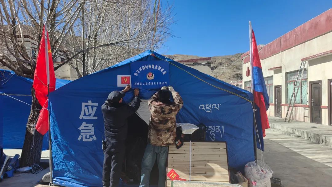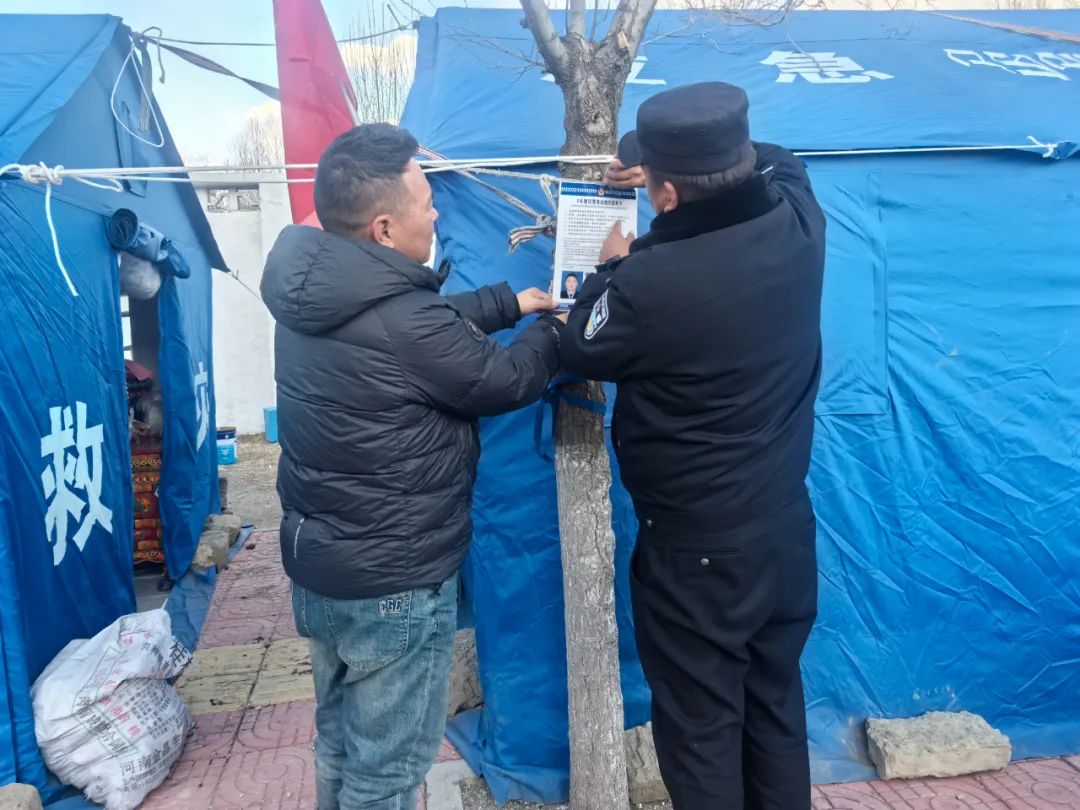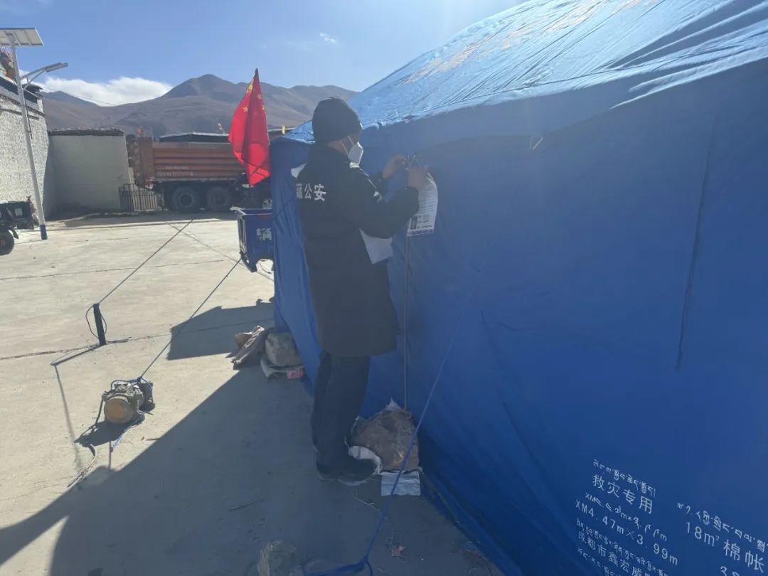 災(zāi)情如令,責任重于泰山。在這場爭分奪秒與時間賽跑的抗震救災(zāi)戰(zhàn)斗中,拉孜公安始終堅定地與群眾并肩同行,以“伴隨式”守護的帳篷警務(wù)室,為受災(zāi)群眾筑牢安全防線。一頂頂 “帳篷警務(wù)室” 以迅雷不及掩耳之勢搭建完成,恰似一座座堅固的堡壘;一面面鮮艷的黨旗在廢墟之上獵獵作響,傲然飄揚,它們共同構(gòu)成了守護受災(zāi)群眾生命財產(chǎn)安全的鋼鐵長城,成為抗震救災(zāi)戰(zhàn)場上一道令人動容的亮麗風景線 。