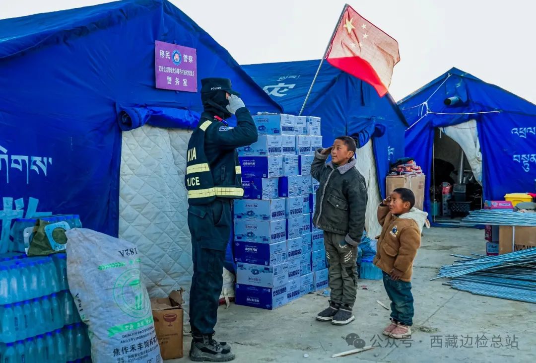 地震發(fā)生后,西藏邊檢總站日喀則邊境管理支隊救援民警不知疲倦地奔走在震中3個受損嚴重的村莊,了解震后群眾生產(chǎn)生活情況,協(xié)助解決面臨的各種困難問題。面對240頂帳篷,230戶1200余名災民,民警們組建了抗震救災雜村、嘎布村和玉白村臨時警務室,配備警力30人,實行24小時勤務模式,主要承擔交通疏導、宣傳教育、隱患排查、秩序維持、輔導功課、協(xié)助地方開展其他救援等任務,同時設置常用藥箱,方便群眾用藥需求,被群眾親切地稱為“建在身邊的派出所”。