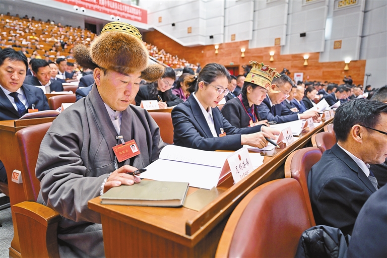 19日上午,自治區(qū)十二屆人大三次會議在拉薩開幕。圖為代表們認真聆聽政府工作報告。記者 旦增西旦 攝