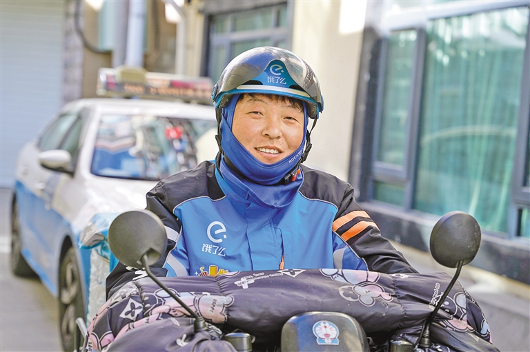 拉薩街頭,一名外賣小哥為顧客送餐。記者 貢曲羅杰 攝