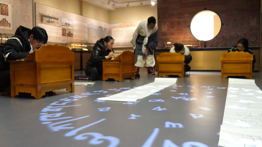 2月28日是藏歷新年初一,市民和游客在西藏博物館展廳參加藏文書(shū)法互動(dòng)體驗(yàn)活動(dòng)(2月28日攝)。新華社記者吳思思 攝