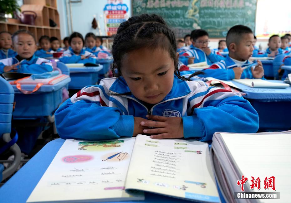 3月10日,拉薩市第一小學(xué)一年級八班學(xué)生們正在上藏語文課。當(dāng)日,西藏拉薩市春季學(xué)期開學(xué),各項教學(xué)工作有序開展。中新社記者 李林 攝