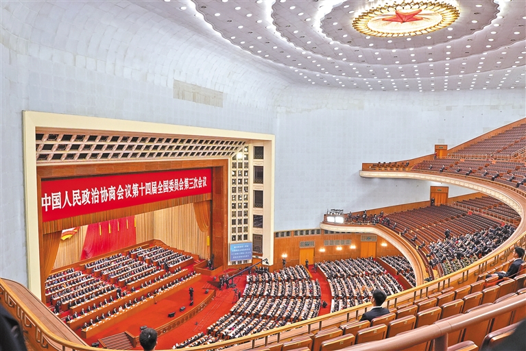 圖為3月10日上午,中國人民政治協(xié)商會(huì)議第十四屆全國委員會(huì)第三次會(huì)議在北京人民大會(huì)堂閉幕。記者 旦增平措 次旦央吉 攝