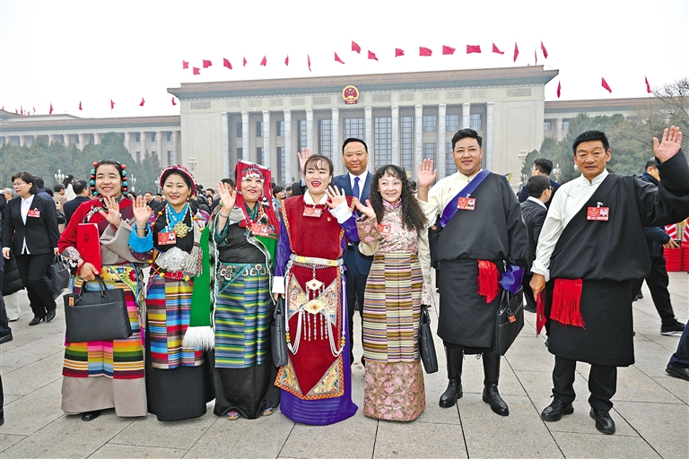 圖為閉幕會(huì)結(jié)束后,西藏全國人大代表信心滿懷走出會(huì)場。記者 旦增西旦 攝