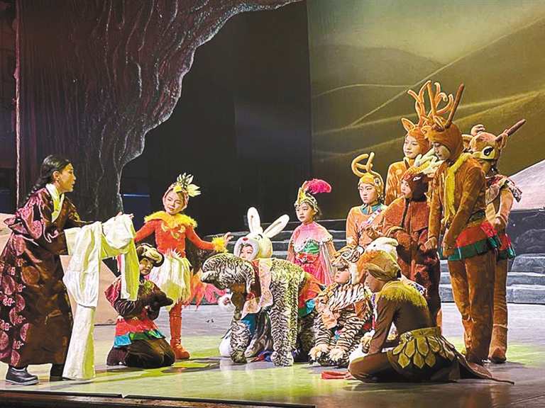 少兒舞臺劇藏戲《頓月頓珠》以傳統(tǒng)八大藏戲的故事為藍(lán)本,以人與自然和諧相處、人類命運(yùn)共同體和親情為主題,講述了兩位同父異母的王子頓珠與頓月被迫逃亡到最終獲得幸福人生的故事。