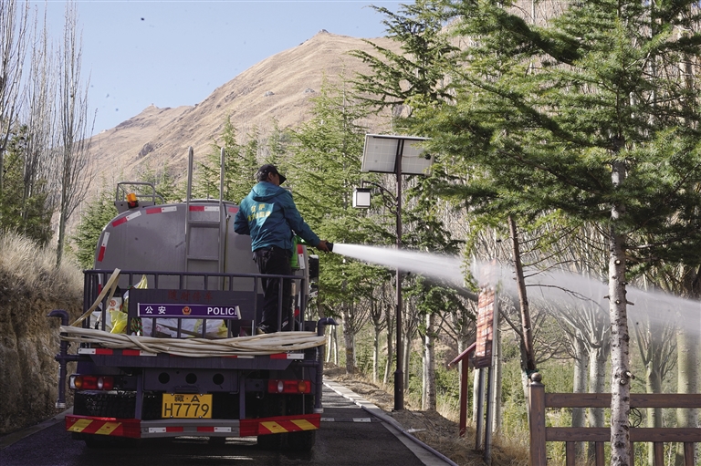 在南山公園,記者看到工人們正忙著給樹澆水。南山公園安保人員扎西次旺告訴記者:“雖然我是負責安保工作的,但是我不忙的時候也會去給樹澆水,因為這里的每一棵樹、每一株草對于我們而言都有非常大的意義。通過大家的努力,我相信我的家鄉(xiāng)會變得越來越綠,生態(tài)環(huán)境也會越來越好?!?/p>