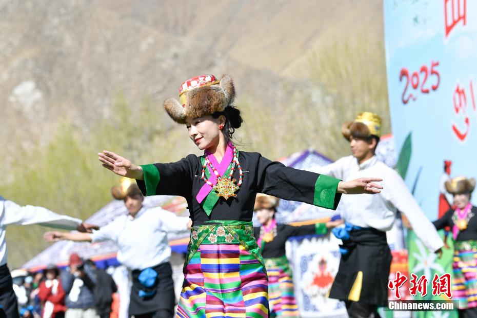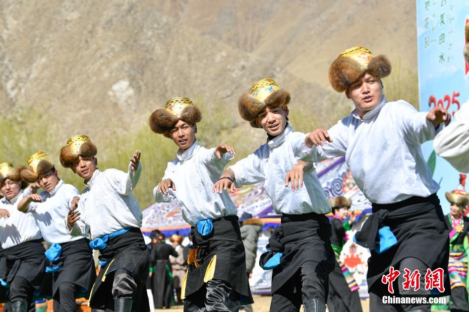 3月16日,西藏拉薩迎來一年一度的傳統(tǒng)春耕儀式。當(dāng)日,拉薩市曲水縣色達(dá)村村民身著節(jié)日盛裝,相聚在田間,載歌載舞,共同迎接春耕第一犁。家家戶戶端著自家的“切瑪”(象征五谷豐登)帶著青稞酒、酥油茶等物品聚在田間,互敬青稞酒,開始撒種,祈求全年風(fēng)調(diào)雨順、五谷豐登。圖為曲水縣色達(dá)村春耕儀式現(xiàn)場,當(dāng)?shù)孛癖姳硌輫壹?jí)非物質(zhì)文化遺產(chǎn)《吉祥仲孜》。中新社記者 貢嘎來松 攝