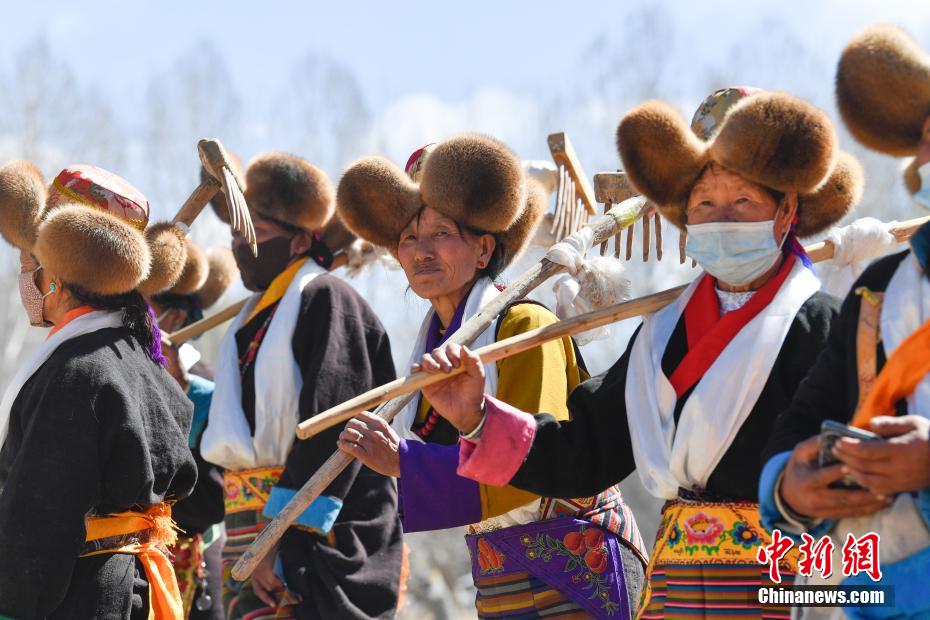 3月16日,西藏拉薩迎來一年一度的傳統(tǒng)春耕儀式。當(dāng)日,拉薩市曲水縣色達(dá)村村民身著節(jié)日盛裝,相聚在田間,載歌載舞,共同迎接春耕第一犁。家家戶戶端著自家的“切瑪”(象征五谷豐登)帶著青稞酒、酥油茶等物品聚在田間,互敬青稞酒,開始撒種,祈求全年風(fēng)調(diào)雨順、五谷豐登。圖為曲水縣色達(dá)村春耕儀式現(xiàn)場。中新社記者 貢嘎來松 攝