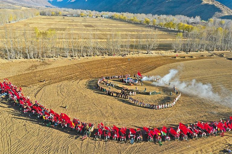 西藏農(nóng)耕文化的發(fā)祥地—雅礱河谷春耕開犁儀式現(xiàn)場。記者 洛桑 通訊員 次仁龍布 攝