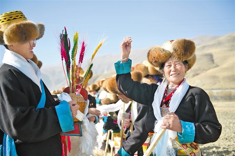 山南市扎囊縣扎其鄉(xiāng)藏仲村村民互敬“切瑪”。記者 潘多 攝