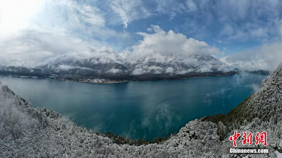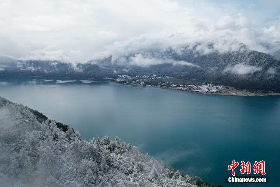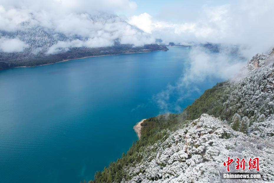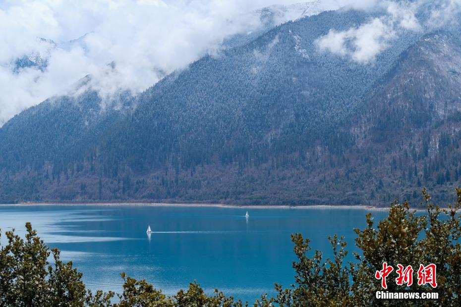 巴松錯(cuò)位于西藏林芝工布江達(dá)縣境內(nèi),地處巴河上游的高山峽谷中,是西藏首個(gè)自然風(fēng)景類國家5A級旅游景區(qū)。4月5日,巴松錯(cuò)迎來一場春雪,雪后四周原始森林猶如蒙上潔白面紗,湖面宛如一面藍(lán)寶石鑲嵌其中,風(fēng)光如畫。圖為4月5日,巴松錯(cuò)的湖光山色。中新社記者 江飛波 攝