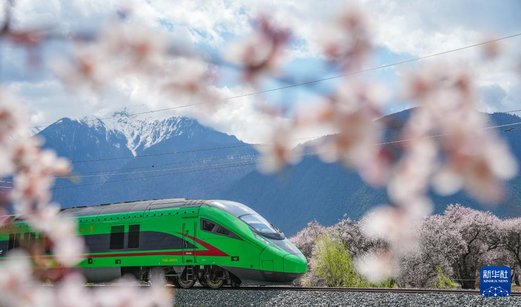 當(dāng)列車駛?cè)肓种ゾ硟?nèi),桃花的盛景會達(dá)到高潮,野生桃花漫山遍野。車在花中跑,人在畫中游,馳騁的復(fù)興號動車與鐵道旁盛開的桃花構(gòu)成了一幅人與自然和諧共生的畫卷。“第一次看到復(fù)興號從眼前飛馳而過,就像看見家鄉(xiāng)的雄鷹掠過雪山。”林芝站安檢員德吉拉姆說。