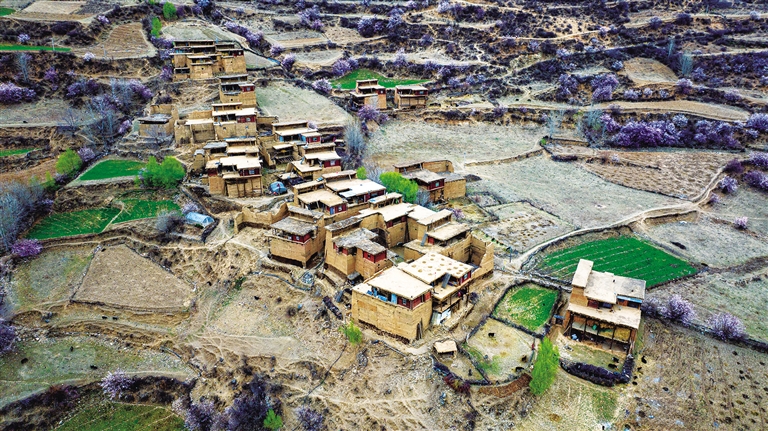 繼續(xù)向前出發(fā),山路崎嶇,我們迷路了,不過(guò)迷路是探訪(fǎng)秘境的前奏。當(dāng)導(dǎo)航徹底失靈,翻越數(shù)座山后,一片粉色花海突然從山坳間涌出——我們到了敏都鄉(xiāng)馬覺(jué)村。金沙江在此劈開(kāi)峽谷,海拔驟降,桃李綴滿(mǎn)枝頭。村民正修建羊圈,見(jiàn)我們風(fēng)塵仆仆,笑著問(wèn)我們要去哪兒。得知我們是過(guò)來(lái)采風(fēng)的,村民便笑著指向山間:“那邊的桃花更好看,現(xiàn)在是桃花季!”