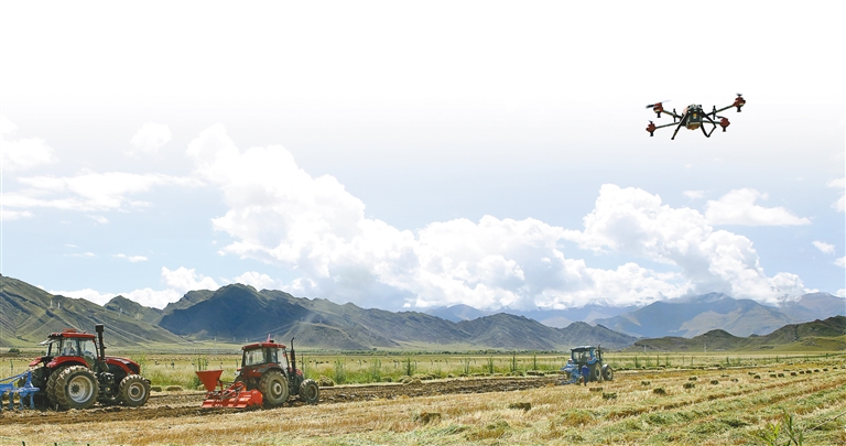 智能植保無人機(jī)在拉薩市林周縣助力農(nóng)業(yè)生產(chǎn)。記者 白瑪澤旺 攝