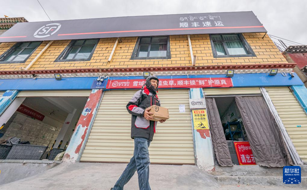 拉巴走出站點(diǎn)準(zhǔn)備去派件(4月24日攝)。新華社記者 丁增尼達(dá) 攝