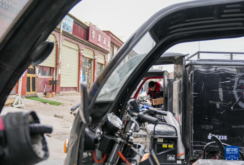 拉巴在站點(diǎn)內(nèi)整理快遞(4月24日攝)。新華社記者 晉美多吉 攝