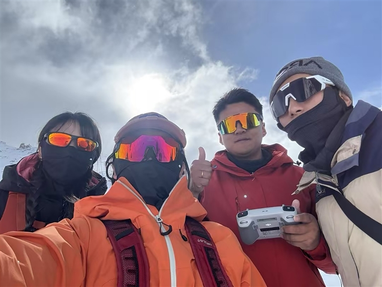 今年是“95后”貢曲羅杰第二次登頂,盡管去年參加過洛堆峰登山探險活動,可雪山的魅力依舊讓他深深著迷。“我看著無人機(jī)拍攝下登山者們依次攀爬的過程,莫名激動。而當(dāng)我將焦距調(diào)至七倍對準(zhǔn)山頂時,雪山更是讓我震撼,這就是我一直想要記錄的畫面?!必暻_杰說。為了能精準(zhǔn)調(diào)整相機(jī)參數(shù),他放棄了保暖必需的手套,一心專注拍攝,直至完成任務(wù)。此次攀登洛堆峰,貢曲羅杰和阿旺尼瑪拍攝了大量出彩的視頻和圖片。