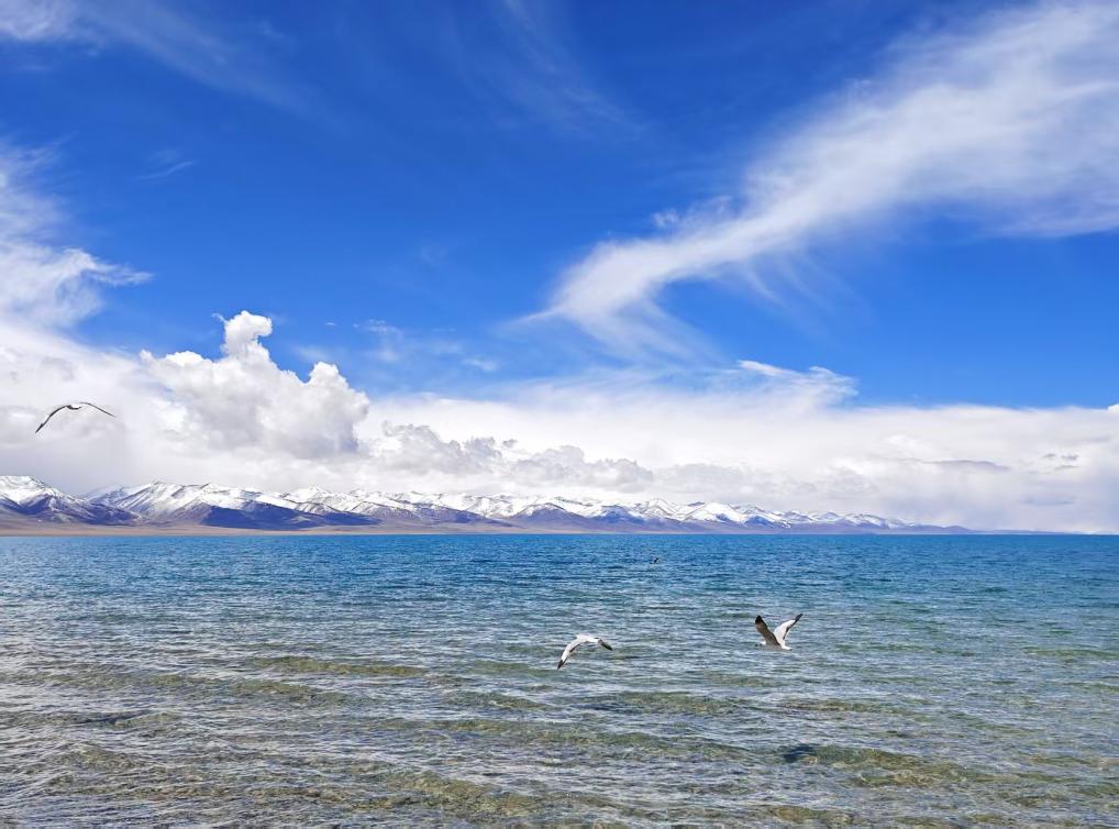 “我第一次來(lái)納木錯(cuò),真幸運(yùn)能趕上‘開(kāi)湖’盛景!”來(lái)自四川成都的游客白丹特意穿上了藏族傳統(tǒng)服裝來(lái)拍照,“這里每一幀都美得像畫(huà),非常出片?!?/p>