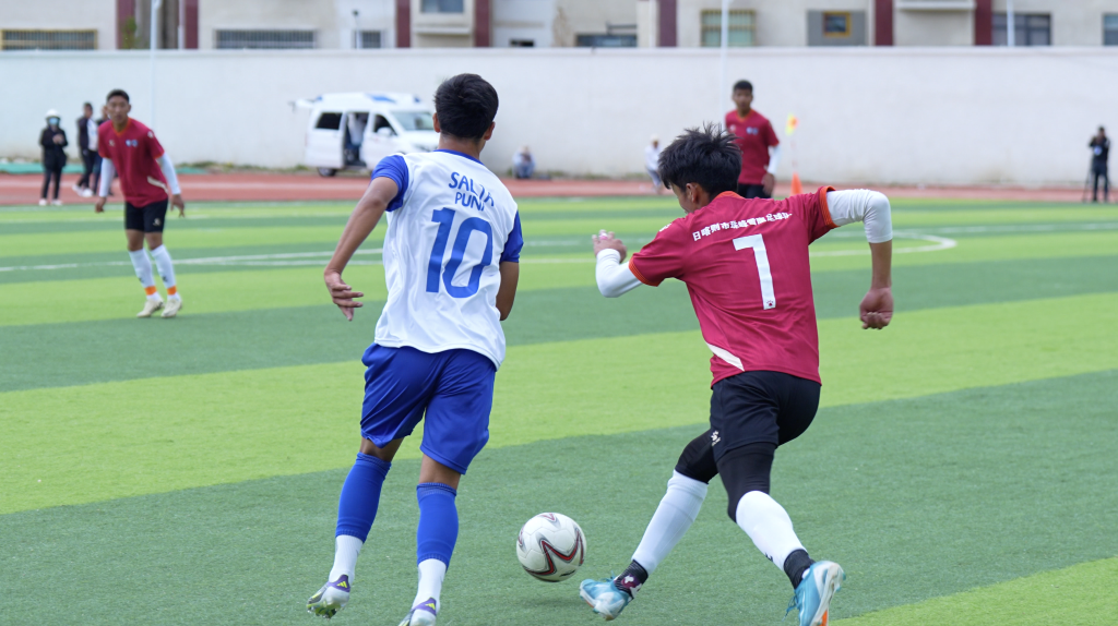 西藏日喀則市上海實(shí)驗(yàn)學(xué)校足球隊(duì)的同學(xué)們