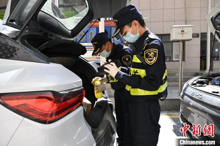 5月25日,在西藏自治區(qū)日喀則市吉隆縣的吉隆口岸,海關(guān)工作人員在對(duì)出口的國(guó)產(chǎn)新能源汽車(chē)進(jìn)行檢查。據(jù)統(tǒng)計(jì),今年前4個(gè)月,吉隆口岸新能源汽車(chē)出口成績(jī)亮眼。出口量達(dá)1973輛,同比增長(zhǎng)13.59% 。中新社記者 貢嘎來(lái)松 攝
