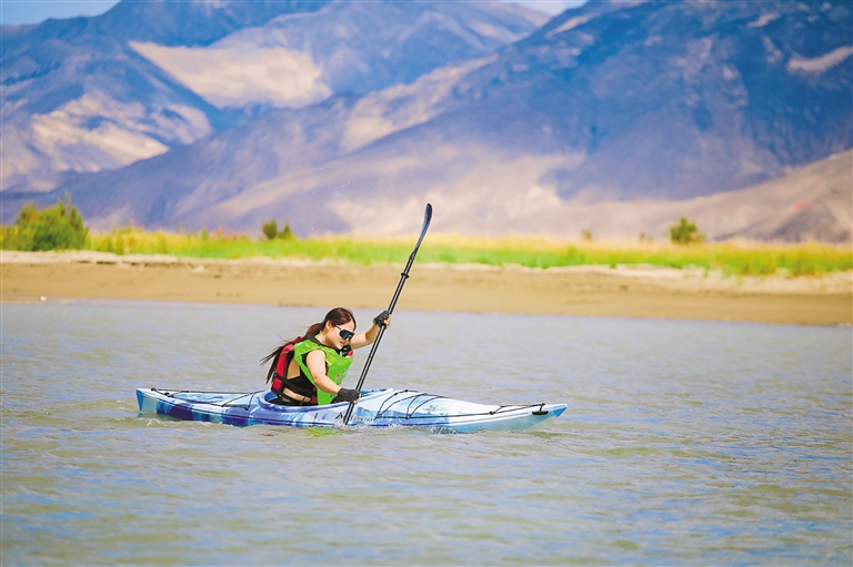 皮劃艇比賽環(huán)節(jié),運動員在雅魯藏布江上劈波斬浪。