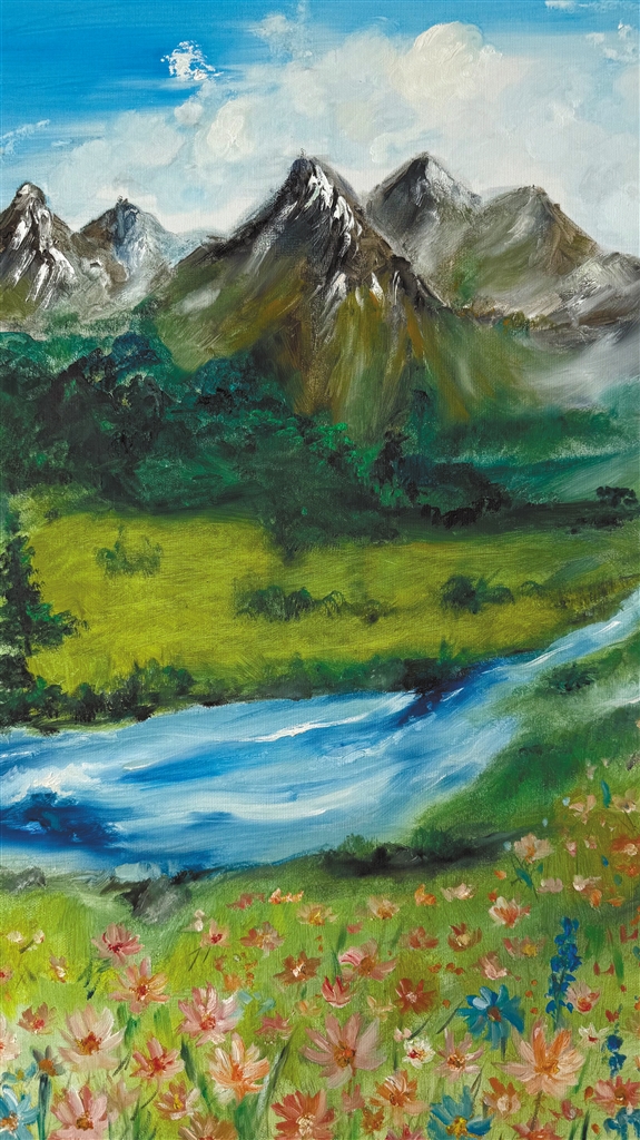 澤巴珍油畫作品《格桑花愿》。
