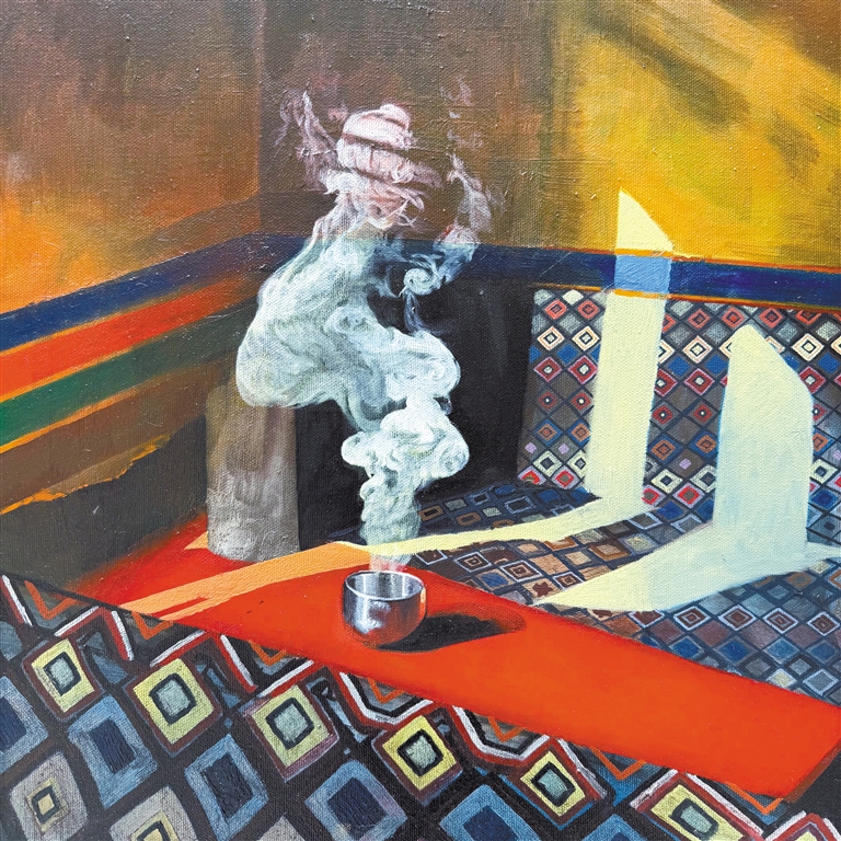 謝曉曉油畫作品《茶館》。