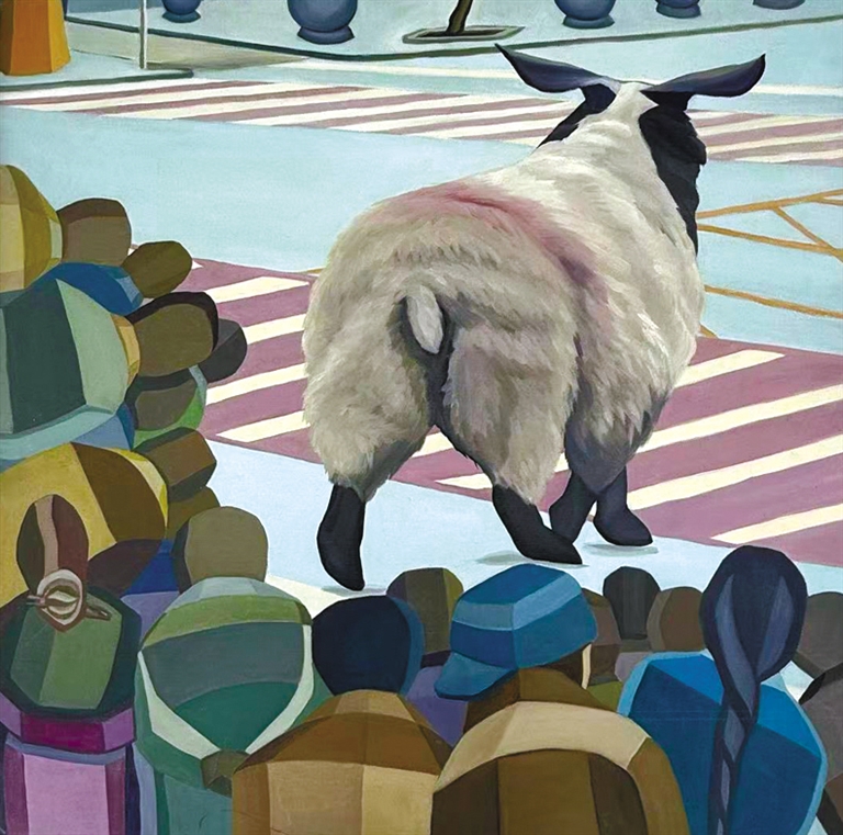 陳凌燕油畫作品《突兀的矛盾》。