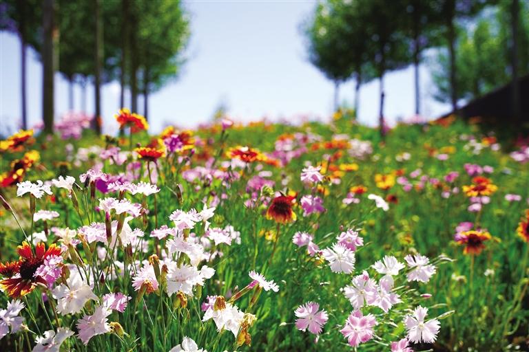 六月的拉薩,陽(yáng)光正好。澄澈藍(lán)天如洗,高遠(yuǎn)而明亮。柳梧大橋下的濱河公園,河畔草地鋪滿各色小花,紅的明艷、粉的柔和、紫的淡雅,肆意綻放在綠意間,仿佛步入印象派大師莫奈的畫(huà)布之中。成片盛開(kāi)的各類花卉爭(zhēng)奇斗艷,五彩斑斕的花朵沿著河畔鋪展開(kāi)來(lái),形成一片片絢麗的花海。不同顏色的花朵相互交織,隨風(fēng)搖曳,與藍(lán)天白云、碧綠的河水、遠(yuǎn)處綠意盎然的南山相映成趣,構(gòu)成了一幅花海畫(huà)卷。