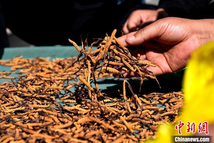 圖為6月13日,蟲草商們挑選蟲草。中新社記者 李林 攝