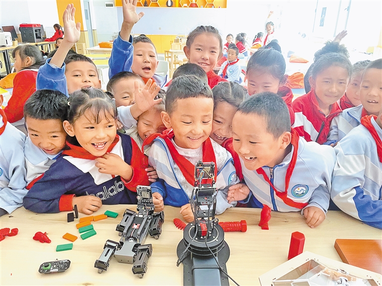 在桑珠孜區(qū)青島小學的科學課堂上,智能實驗臺前圍滿了興致勃勃的孩子,他們手持 3D 打印筆,精心繪制著心中的“太空基地”。作為西藏首個啟動“ STEM ”科學課程的地區(qū),這里不僅建成了全區(qū)首個小學科創(chuàng)實驗室,還被教育部認定為西藏唯一的全國“白名單”科創(chuàng)賽事基層組織單位。“以前,孩子們只能從課本上了解實驗,現(xiàn)在能親手操作機器人、設計航天模型?!鼻鄭u小學黨支部書記周杰介紹道??苿?chuàng)課程的開展,如同一把鑰匙,打開了孩子們創(chuàng)新思維和科學探索的大門,為高原青少年搭建起展示科學素養(yǎng)與創(chuàng)新能力的舞臺,推動當?shù)亟逃聵I(yè)邁向新高度。