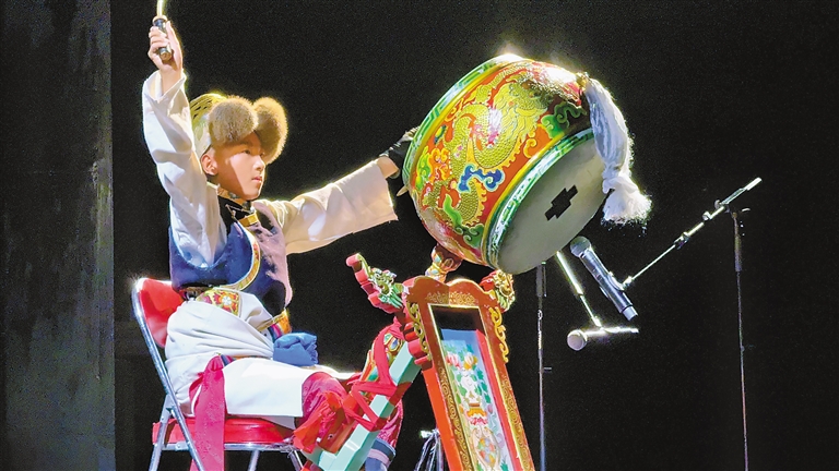 扎西多吉從小學(xué)一年級(jí)起便跟隨老師學(xué)藝,憑借扎實(shí)功底曾在“中國(guó)少兒戲曲小梅花薈萃”活動(dòng)中獲得“小梅花”稱號(hào)?!八竟氖遣貞虻撵`魂節(jié)奏,每一次擊打都要帶著對(duì)傳統(tǒng)文化的敬意?!边@位14歲少年的專注與執(zhí)著,不僅收獲了藝術(shù)成就,更錘煉出沉穩(wěn)大氣的品格。母親措姆欣慰地表示:“看著孩子在藏戲?qū)W習(xí)中成長(zhǎng),是最幸福的事?!?/p>