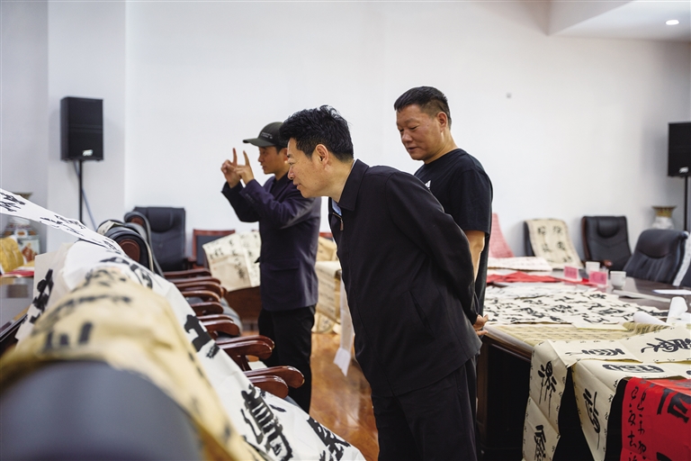 下午的漢文書法評(píng)選同樣精彩。兩百多幅參選作品,涵蓋楷書、行書、隸書、草書、篆書五種字體,風(fēng)格多樣,展現(xiàn)出扎實(shí)的書法功底和深厚的文化底蘊(yùn)。中國(guó)書協(xié)會(huì)員、西藏書協(xié)理事田中鶴認(rèn)真地審閱著每一幅作品,他感慨道:“活動(dòng)自啟動(dòng)便獲全國(guó)書法愛好者廣泛關(guān)注,參賽作品不僅數(shù)量可觀,質(zhì)量更值得肯定。”其中,一等獎(jiǎng)的楷書作品工整端莊,緊扣“民族團(tuán)結(jié)”主題,既彰顯書法藝術(shù)魅力,又傳遞出“高原紅石榴”象征的團(tuán)結(jié)奮進(jìn)精神,給評(píng)審團(tuán)留下深刻印象。