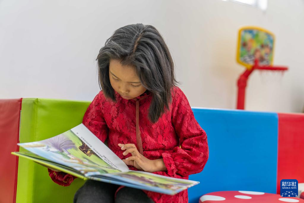 7月17日,小朋友在三有村幸福驛站托幼室內(nèi)看繪本。新華社記者 旦增尼瑪曲珠 攝