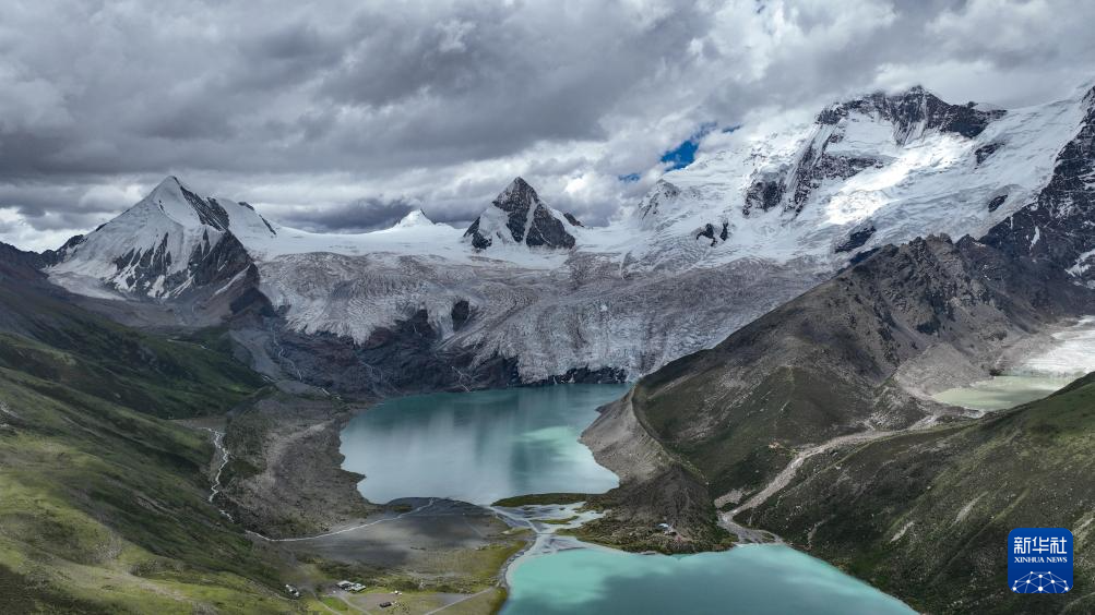 7月19日拍攝的薩普雪山及延伸的冰川(無(wú)人機(jī)照片)。新華社記者 晉美多吉 攝
