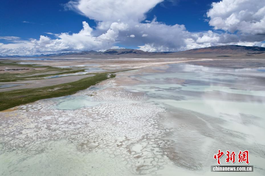 7月20日,航拍西藏阿里地區(qū)革吉縣鹽湖鄉(xiāng)境內(nèi)的鹽湖。一千多年前,阿里地區(qū)有50多家駐扎的鹽幫,將自然鹽用羊馱牛背邊放牧邊運輸?shù)姆绞?,運送到普蘭、日喀則、印度、尼泊爾等地,并用以物易物的方式換回青稞、磚茶、布料等日常生活所需的物品,從而孕育了遠負盛名的“鹽羊古道”傳奇。近年來,當(dāng)?shù)亻_辦粗鹽巴加工廠、打造“鹽羊古道”旅游品牌等方式,使千年“鹽羊古道”煥發(fā)新生機。(無人機照片)中新社記者 張祥毅 攝