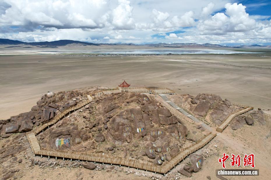 7月20日,在西藏阿里地區(qū)革吉縣鹽湖鄉(xiāng)拍攝的巖畫遺址公園,該遺址公園是“鹽羊古道”全域旅游景點之一。一千多年前,阿里地區(qū)有50多家駐扎的鹽幫,將自然鹽用羊馱牛背邊放牧邊運輸?shù)姆绞剑\送到普蘭、日喀則、印度、尼泊爾等地,并用以物易物的方式換回青稞、磚茶、布料等日常生活所需的物品,從而孕育了遠負盛名的“鹽羊古道”傳奇。近年來,當(dāng)?shù)亻_辦粗鹽巴加工廠、打造“鹽羊古道”旅游品牌等方式,使千年“鹽羊古道”煥發(fā)新生機。(無人機照片)中新社記者 張祥毅 攝