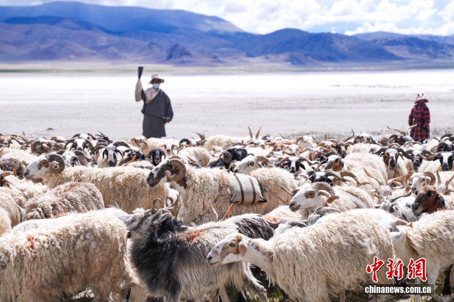 7月20日,在西藏阿里地區(qū)革吉縣鹽湖鄉(xiāng),牧民從羊群中牽引一只將要馱負鹽袋的羊。一千多年前,阿里地區(qū)有50多家駐扎的鹽幫,將自然鹽用羊馱牛背邊放牧邊運輸?shù)姆绞?,運送到普蘭、日喀則、印度、尼泊爾等地,并用以物易物的方式換回青稞、磚茶、布料等日常生活所需的物品,從而孕育了遠負盛名的“鹽羊古道”傳奇。近年來,當(dāng)?shù)亻_辦粗鹽巴加工廠、打造“鹽羊古道”旅游品牌等方式,使千年“鹽羊古道”煥發(fā)新生機。中新社記者 張祥毅 攝