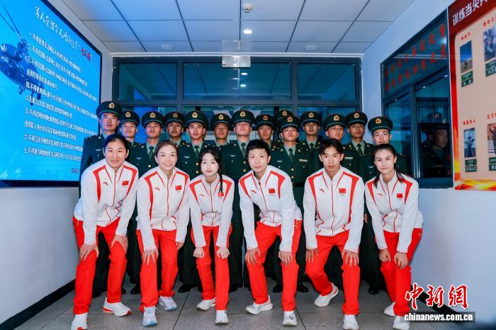 宣講結(jié)束后,運動場上的互動點燃了全場熱情。乒乓臺前,馬龍手持球拍與官兵切磋球技;羽毛球場,陳清晨與戰(zhàn)士組隊,你來我往間展現(xiàn)默契與活力;拳擊場上,李倩親自示范動作要領(lǐng),手把手和官兵“過招”;瑜伽室里,郭崎琪舒展身姿,與女官兵歡樂共舞。此外,潘展樂還與官兵們進(jìn)行了遠(yuǎn)程連線,分享他的水上技巧和訓(xùn)練經(jīng)驗。