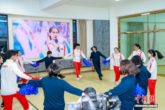 圖為“決勝巴黎·綻放奧運–––奧運冠軍面對面”巡回宣講活動西藏站走進(jìn)軍營與女官兵歡樂共舞現(xiàn)場?;顒臃?供圖