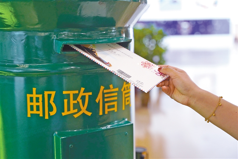 圖為游客在郵政服務(wù)點選購明信片?!∮浾摺∴嵆H荨z