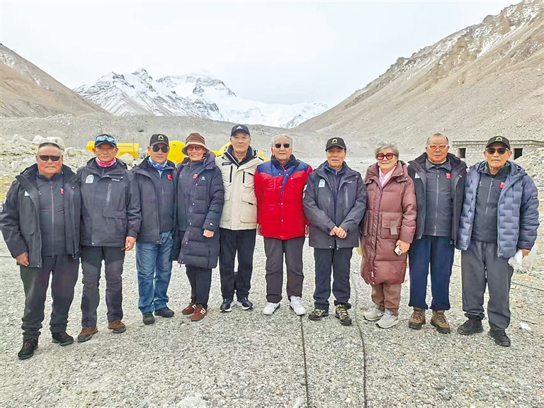 2025年5月6日,登山勇士們參加紀(jì)念中國人再登珠穆朗瑪峰50周年系列活動(dòng)之“登山勇士緬懷活動(dòng)”時(shí)合影。記者 鄭璐 攝(除本圖外的其他圖片均由西藏自治區(qū)登山隊(duì)提供)
