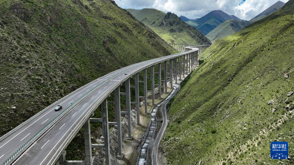 汽車行駛在西藏S5線拉薩至澤當(dāng)?shù)母叩燃?jí)公路上(無人機(jī)照片,2025年7月31日攝)。新華社記者 晉美多吉 攝