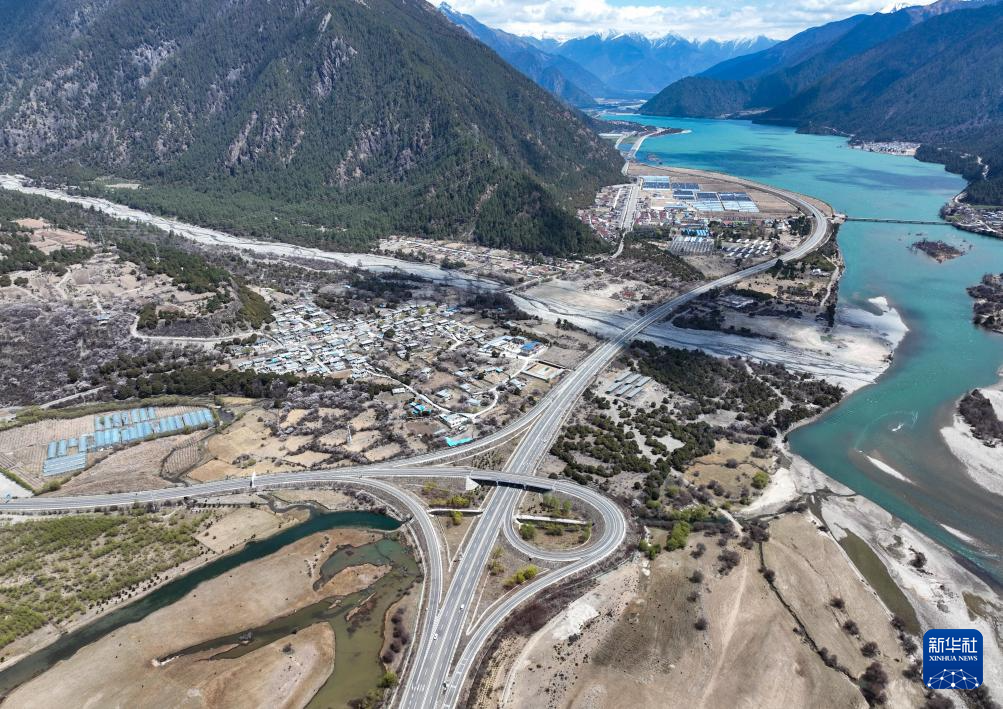 拉薩至林芝的高等級(jí)公路(無人機(jī)照片,2025年4月1日攝)。新華社記者 晉美多吉 攝