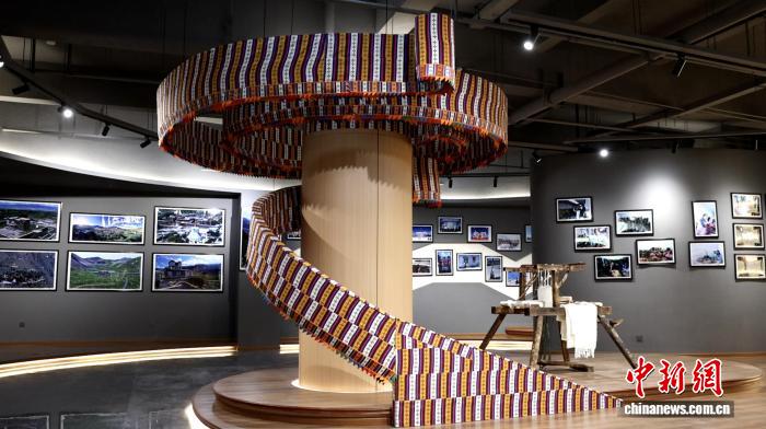 作為扎囊縣“氆氌之鄉(xiāng)”的靈魂技藝,這里陳列著傳統(tǒng)織布機(jī)、多彩氆氌的實(shí)物,旋轉(zhuǎn)式柱子上展示的氆氌成品更是令人驚嘆:既延續(xù)著千年羊毛紡織的溫暖質(zhì)感,又透著當(dāng)代匠人對(duì)傳統(tǒng)技藝的新鮮詮釋?zhuān)故驹胰嗣翊鄠鞯闹腔叟c對(duì)生活的熱愛(ài)。