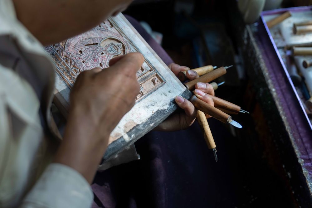 8月6日,雕刻師在工作中。西藏雪巴康雕版印刷制作技藝入選西藏自治區(qū)級非物質(zhì)文化遺產(chǎn)代表性項目名錄。