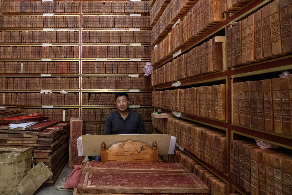 8月6日,一名雕刻師在工作中。西藏雪巴康雕版印刷制作技藝入選西藏自治區(qū)級非物質(zhì)文化遺產(chǎn)代表性項目名錄。
