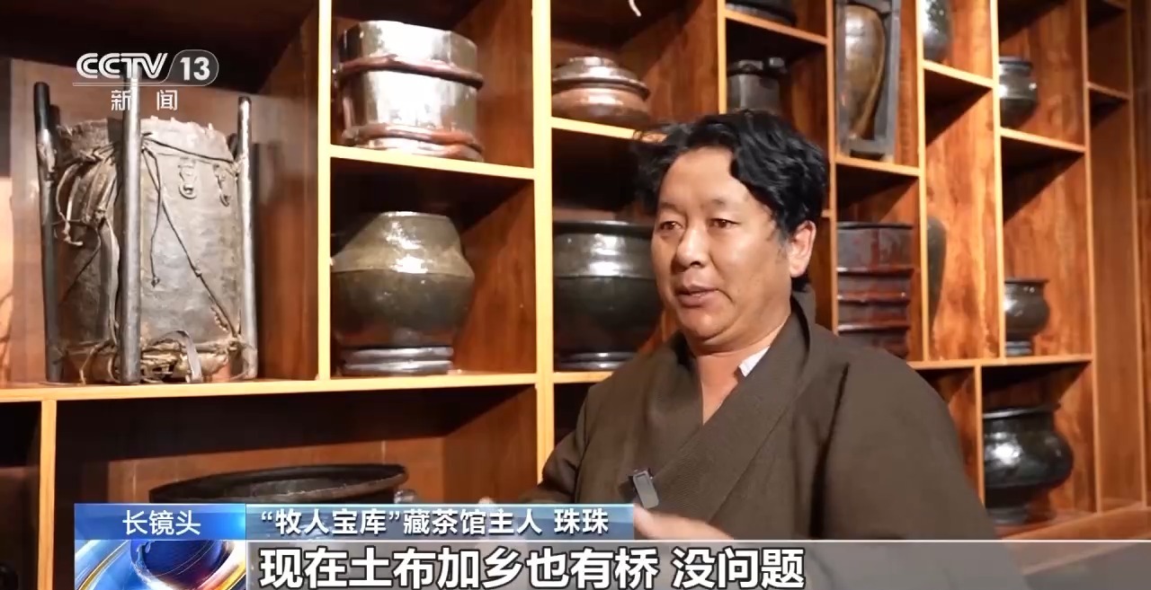 “牧人寶庫(kù)”藏茶館主人 珠珠:現(xiàn)在在黨的恩情下,所有事情都變得便捷。以前沒(méi)水的地方有了水、沒(méi)電的地方通了電、沒(méi)路的地方有了路,我有信心會(huì)變得越來(lái)越好。