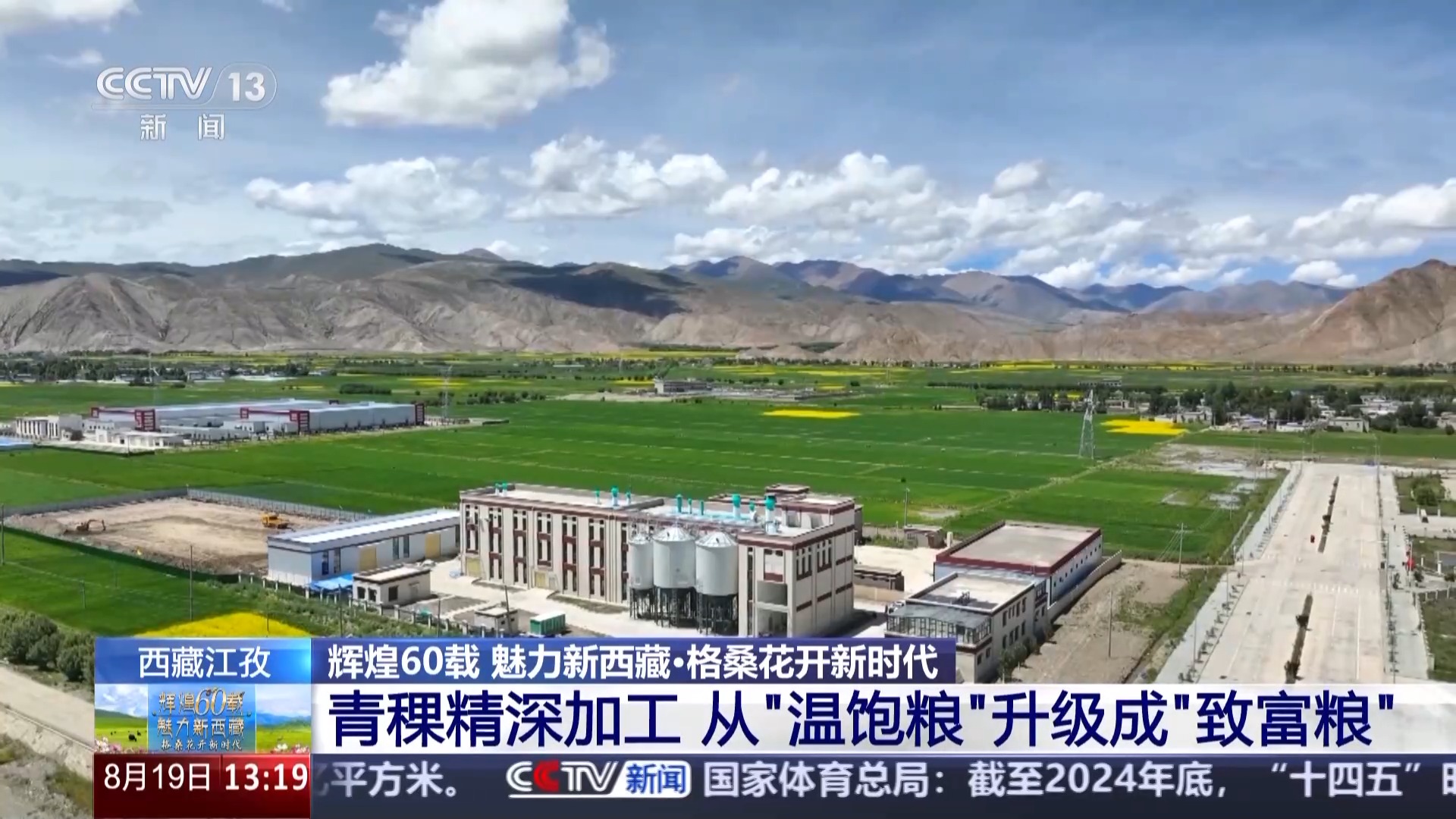 總臺記者 于晨:我現(xiàn)在是在江孜縣的一家專注于青稞產(chǎn)品研發(fā)的科技公司,去年9月,全國首條青稞谷物專用生產(chǎn)線在這里落地,填補了行業(yè)的空白,這讓青稞的得粉率由原來的60%以下提升至了70%以上。